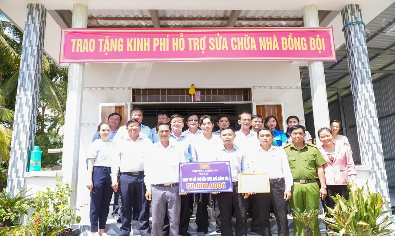 Trong năm 2024, Ban Dân vận Huyện ủy vận động mạnh thường quân hỗ trợ 02 căn nhà cho Hội viên Hội Cựu chiến binh (CCB), gia đình chính sách khó khăn về nhà ở, tổng trị gía mỗi căn nhà 50.000.000đ và đây là căn nhà thứ nhất được trao tặng cho gia đình ông Nguyễn Văn Sốp, chuyên viên Ban Dân vận huyện ủy và là Hội viên Hội CCB. Gia đình thuộc diện khó khăn, không có điều kiện để tự sửa chữa nhà ở mặc dù đã xuống cấp, hư hỏng nặng. Từ sự hỗ trợ của Công ty Viettel Long An, căn nhà vách lá tạm bợ, gia đình đã được thay thế bằng nhà tường kiên cố, khang trang nhằm tạo điều kiện gia đình an tâm, ổn định cuộc sống trong thời gian tới. Đây là 01 trong 02 căn nhà do Công ty Viettel Long An tài trợ một phần kinh phí xây dựng cho các gia đình khó khăn về nhà ở thông qua cầu nối là Sở Thông tin Truyền thông tỉnh Long Long An với sự vận động của Ban Dân vận Huyện ủy Tân Trụ.