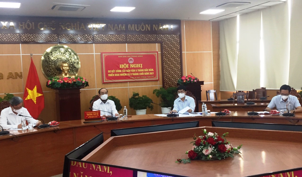 Phát biểu chỉ đạo kết luận Hội nghị, đồng chí Bùi Thị Minh Hoài, Bí thư Trung ương Đảng, Trưởng Ban Dân vận Trung ương ghi nhận: Năm 2021 là năm đầu triển khai thực hiện Nghị quyết Đại hội đại biểu toàn quốc lần thứ XIII của Đảng; năm tiến hành bầu cử đại biểu Quốc hội khóa XV và đại biểu HĐND các cấp nhiệm kỳ 2021 – 2026. 6 tháng qua, đại dịch COVID-19 tiếp tục bùng phát lần thứ 4 với nhiều biến thể mới, tốc độ lây lan nhanh, diễn biến phức tạp, xảy ra tại nhiều tỉnh, thành phố trên cả nước, ảnh hưởng lớn đến mọi mặt đời sống kinh tế - xã hội của đất nước ta.