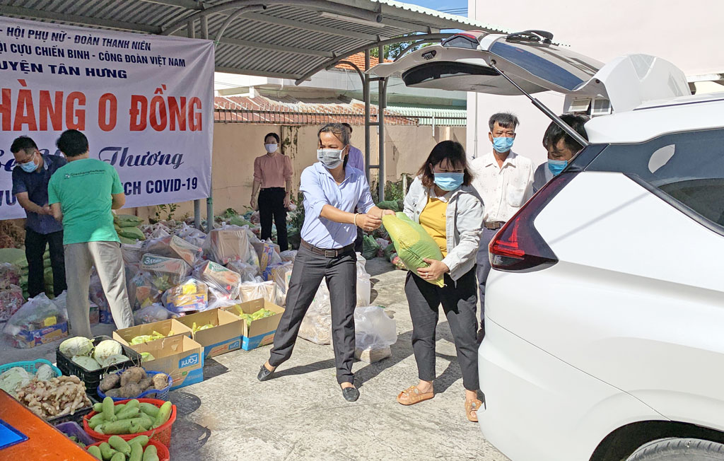 UB.MTTQ Việt Nam huyện Tân Hưng cùng các đoàn thể huyện cũng đang kiêu gọi và tiếp tục nhận được sự ủng hộ vào “Gian hàng 0 đồng” nguồn lương thực, thực phẩm tùy theo khả năng và điều kiện của các tầng lớp nhân dân để san sẻ yêu thương đến với hộ nghèo, cận nghèo, hộ khó khăn của toàn huyện trong khoảng thời gian cao điểm giãn cách xã hội để phòng, chống COVID-19 hiện nay./.