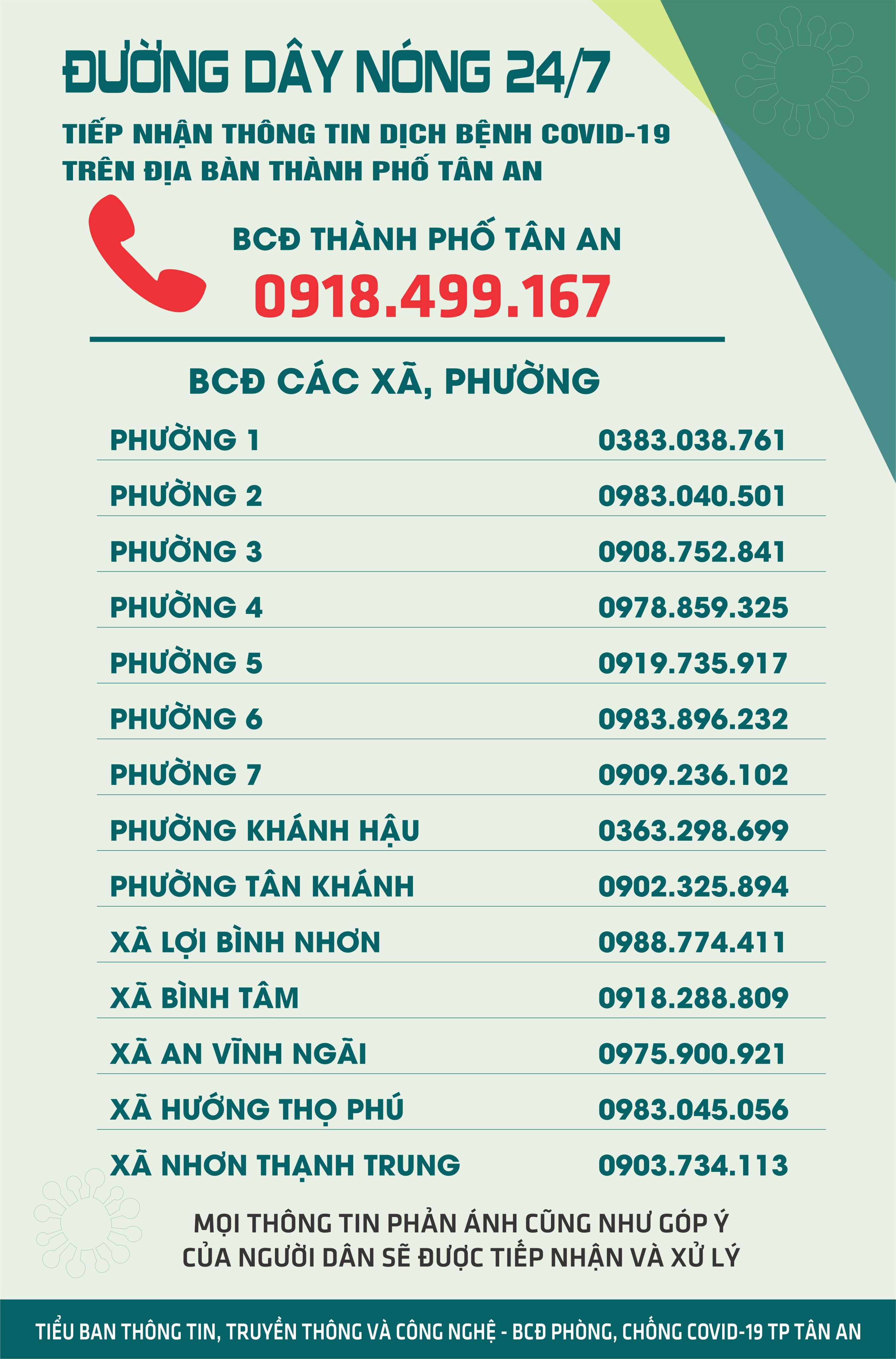 Người dân có nhu cầu thông tin về tình hình dịch bệnh có thể liên hệ ngay số điện thoại của Ban Chỉ đạo phòng, chống dịch Covid-19 thành phố hoặc các xã, phường để được hỗ trợ kịp thời.